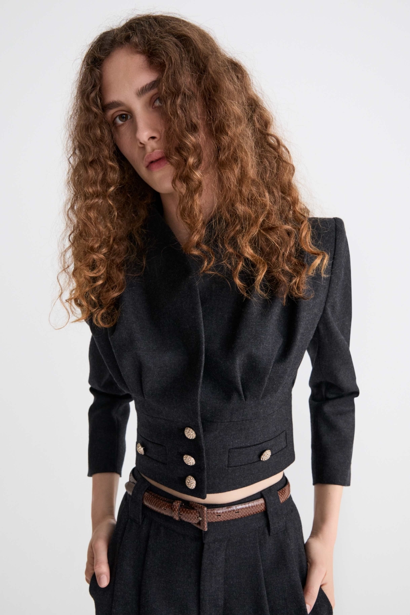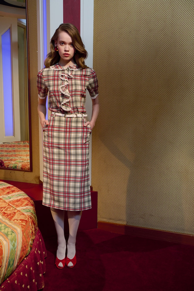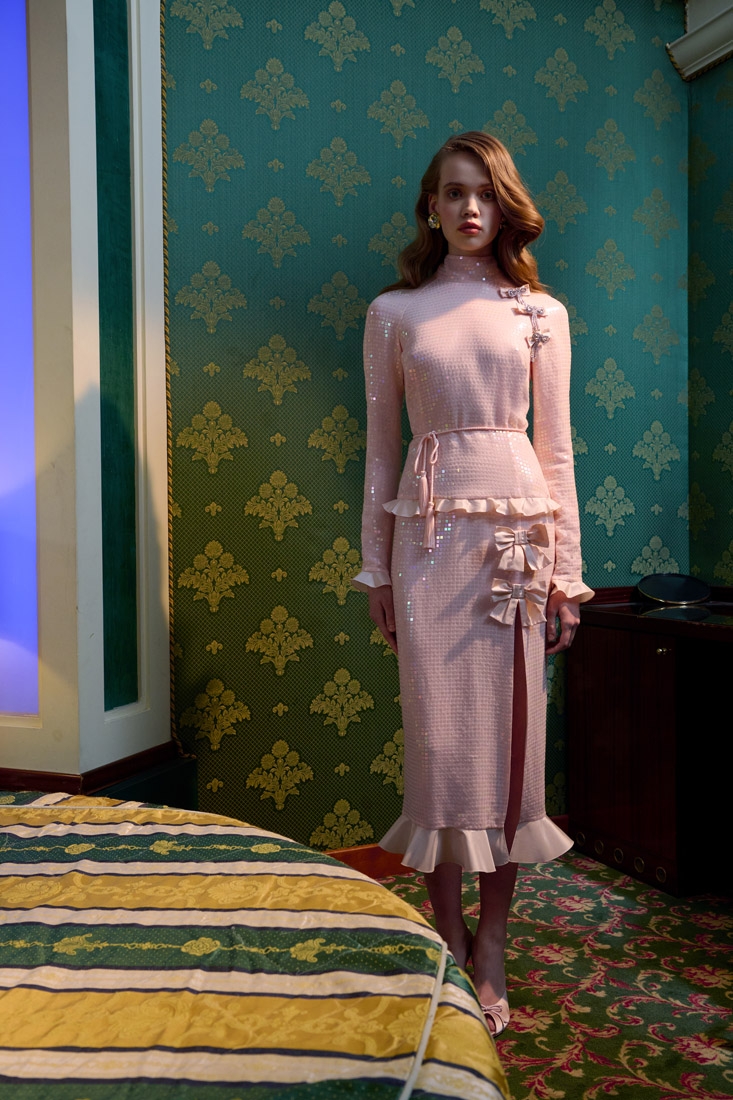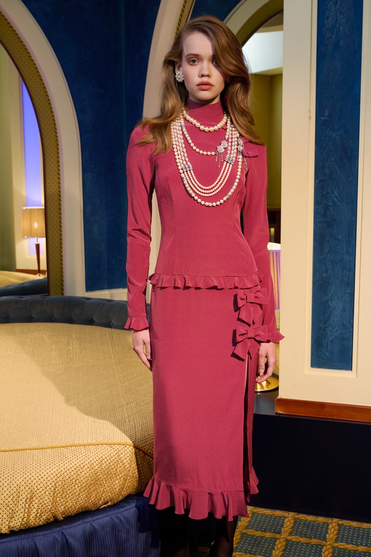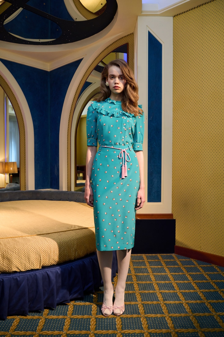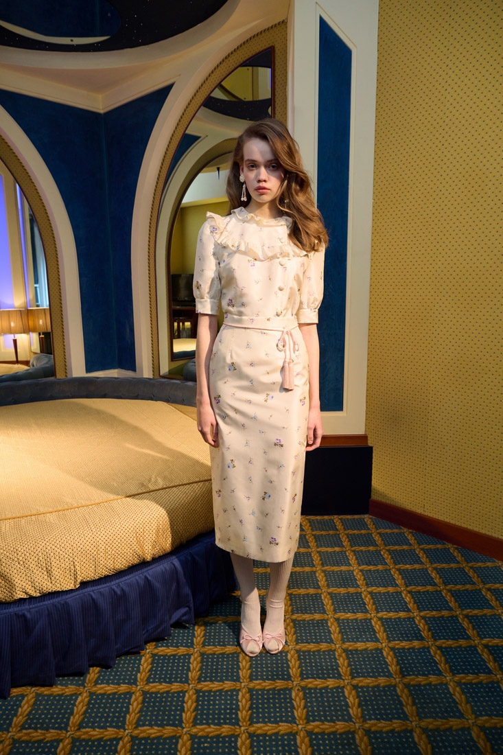 Made entirely in Italy, the collections are distinguished by refined fabrics such as silk crepe de chine, wool tweed bouclé and Chantilly lace. Romantic details such as lace trimmed collars, puff sleeves, and feminine silhouettes are offset with an ironic edge, resulting in designs that are both elegant and unexpected.