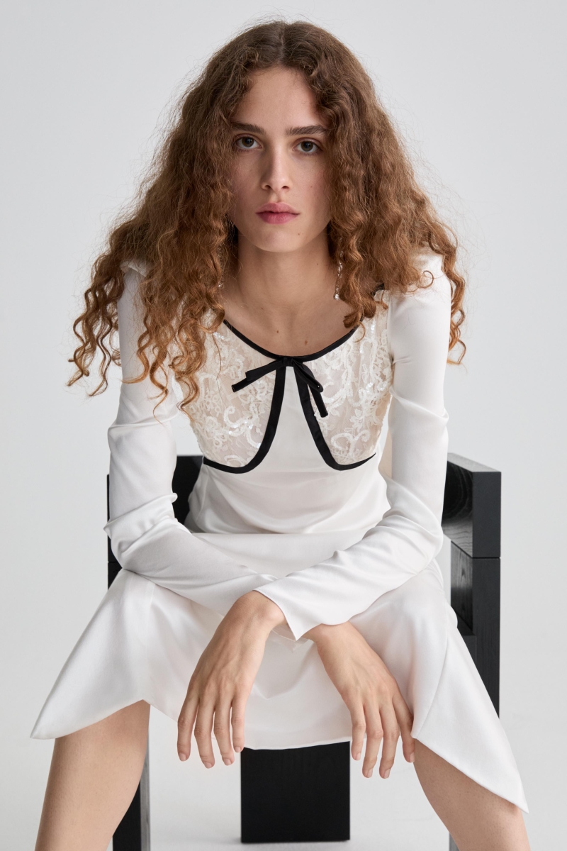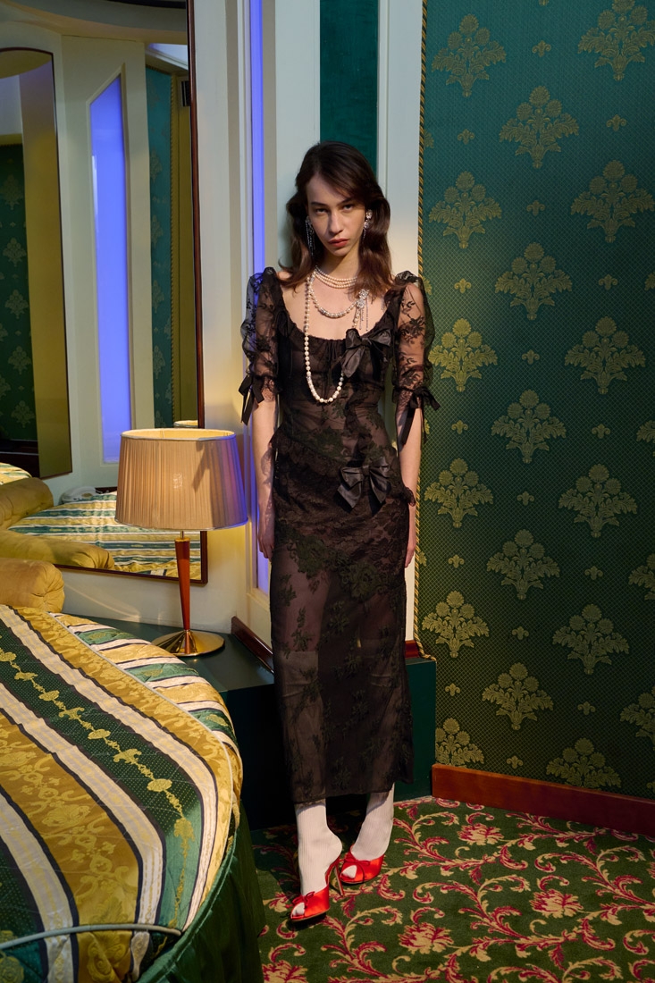 Alessandra Rich founded her namesake label in 2010, establishing offices in both London and Milan. From the beginning, her work has been defined by the tension between playful innocence and daring subversion, showcasing the provocative and rebellious facets of modern femininity. Deliberately distancing itself from conventional aesthetics, the brand captures the essence of a self-aware woman, designing for those who see fashion as both language and play.