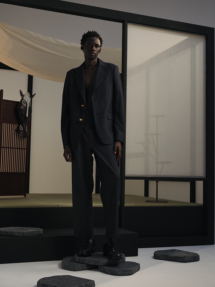 MINEO YAMAGUCHI – Designer Profile Diverse and serene luxury, where primitive art and Japonism are interwoven with Savile Row modernism—this is the signature of Mineo Yamaguchi, founder and designer of AYA Inc. His collections reflect a bold yet meditative aesthetic, produced entirely in-house by MFA-qualified designers and craftspeople trained at a historic Japanese designer’s brand.