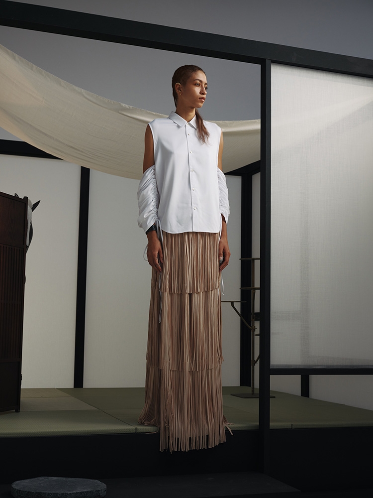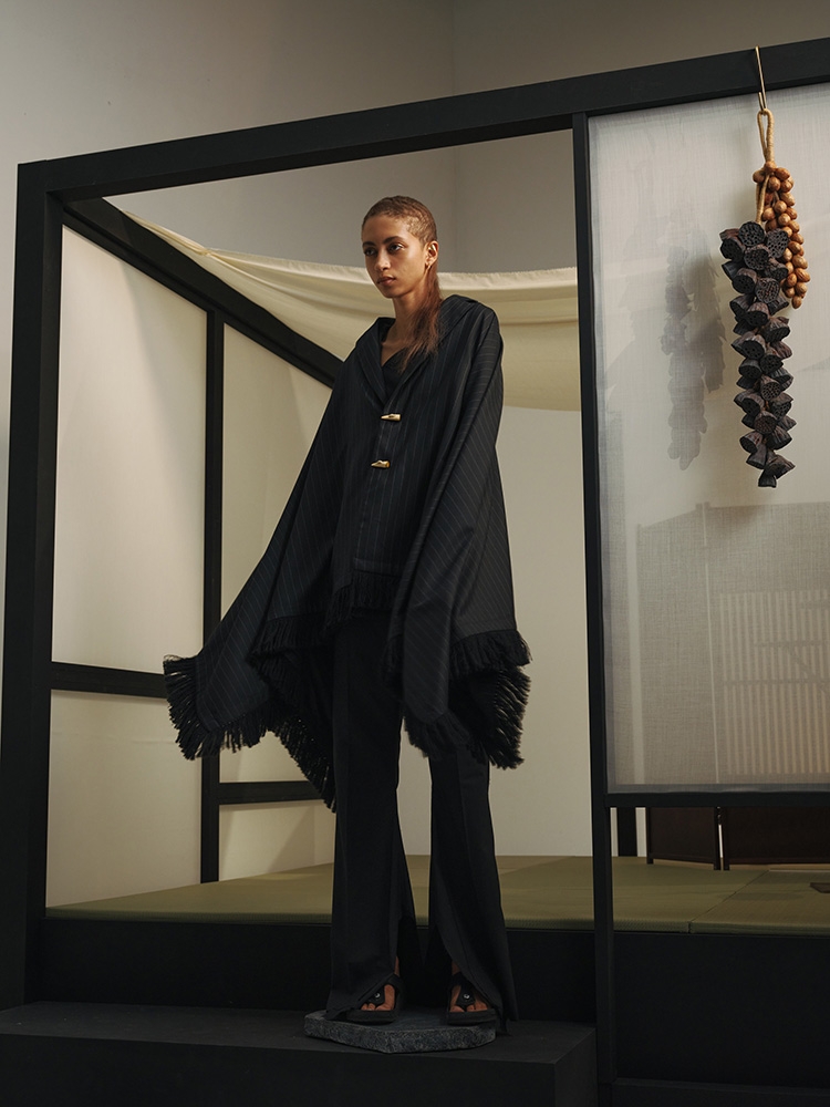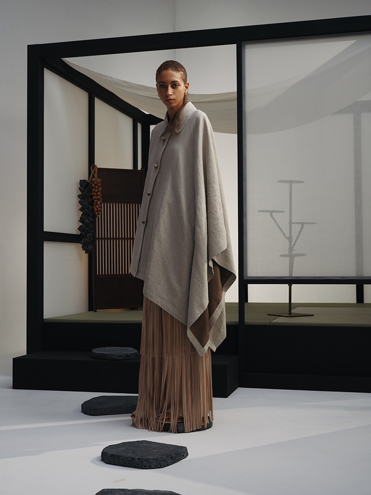 AYA DESIGN, the prêt-à-porter label under AYA Inc., merges high-performance recycled materials with artisan techniques, developed in collaboration with major Japanese converters and research institutions. The brand contributes to a circular economy, offering comprehensive design from material innovation to garment production.