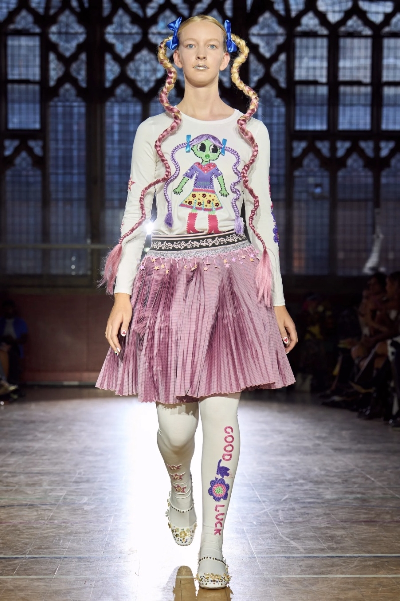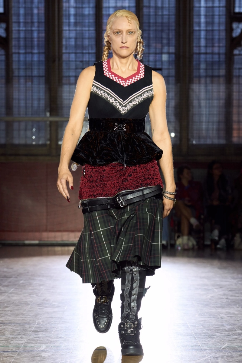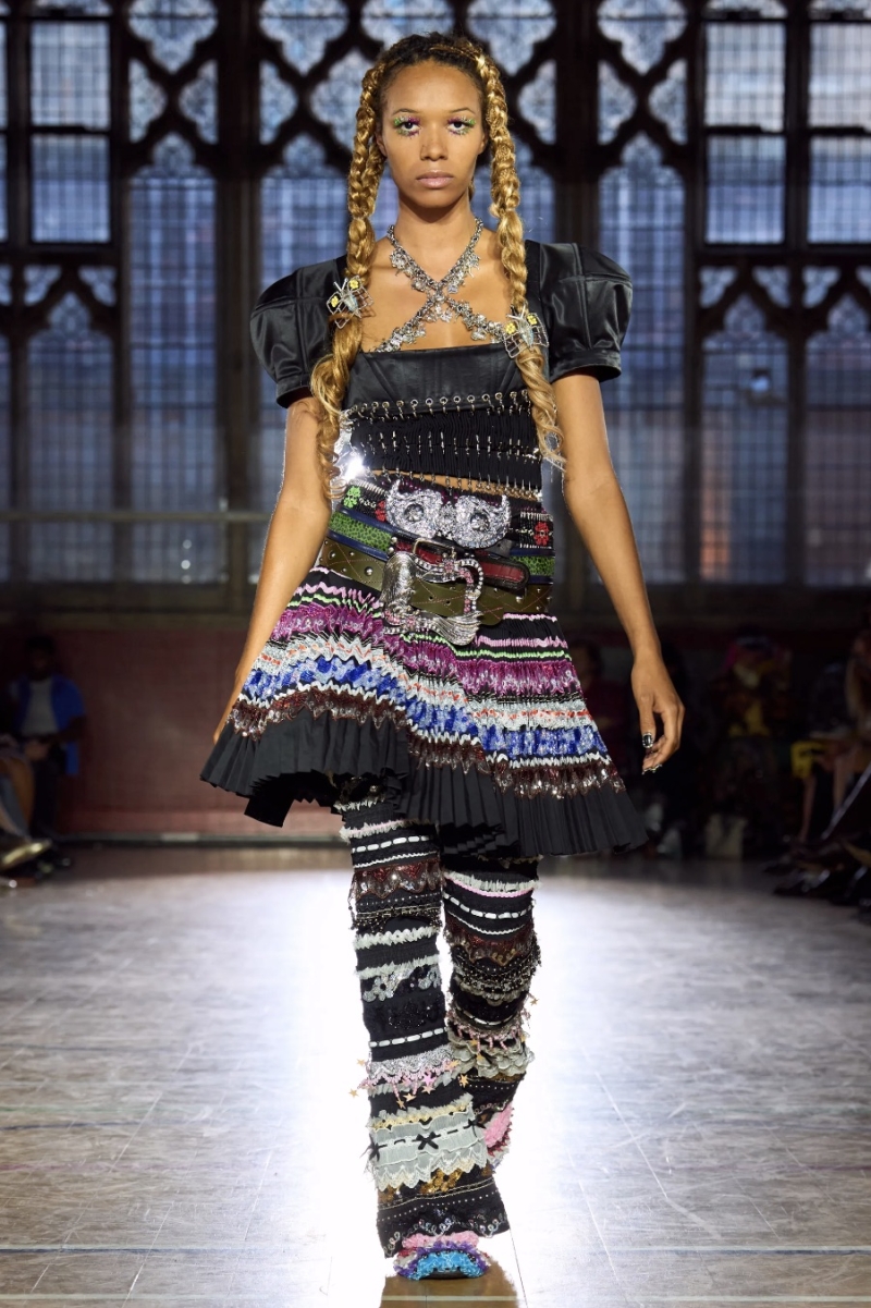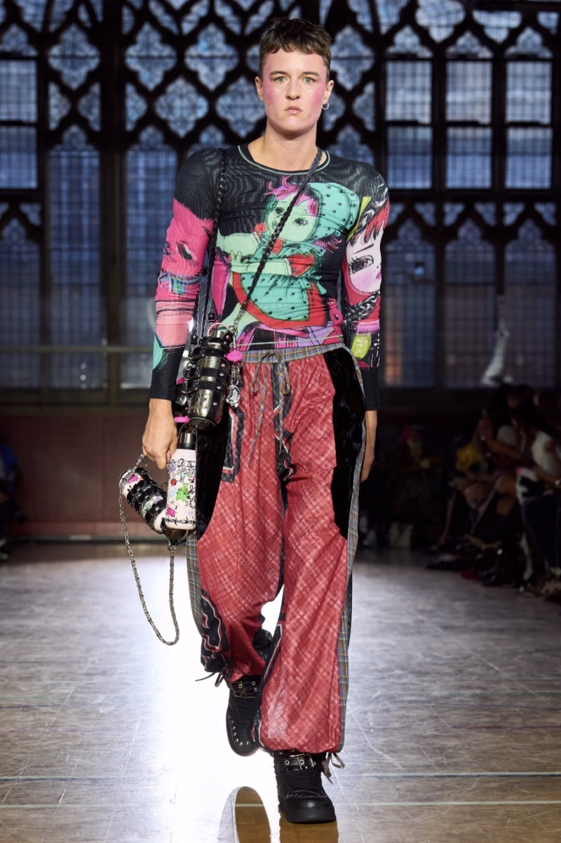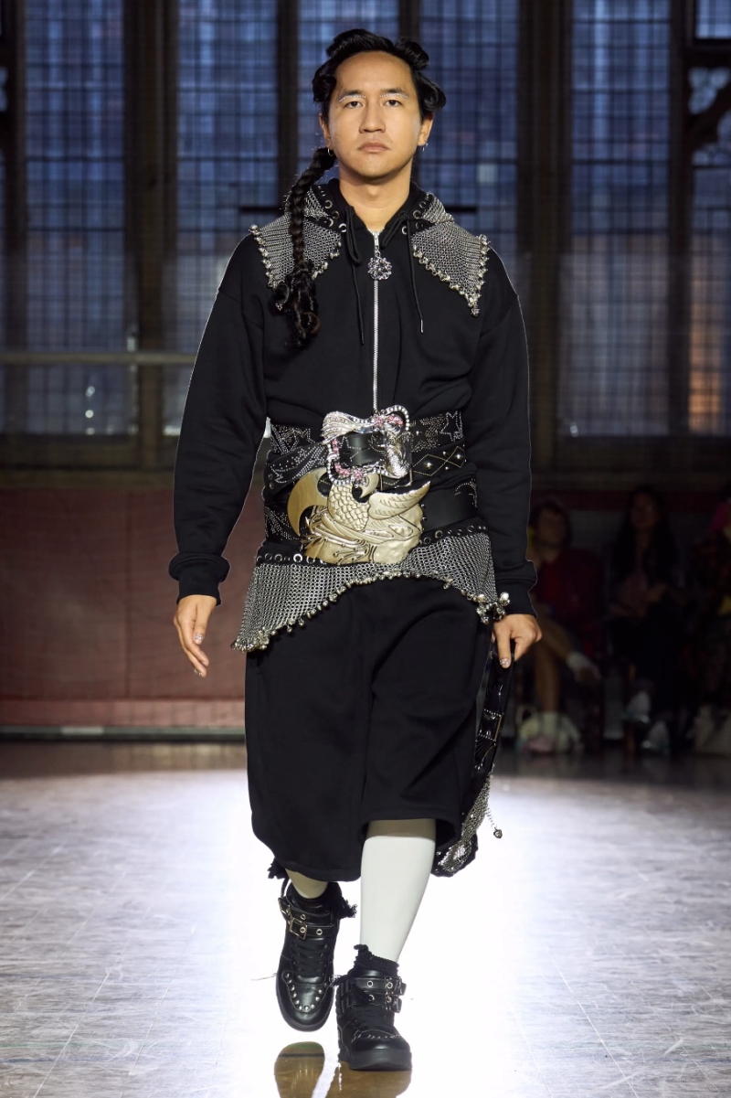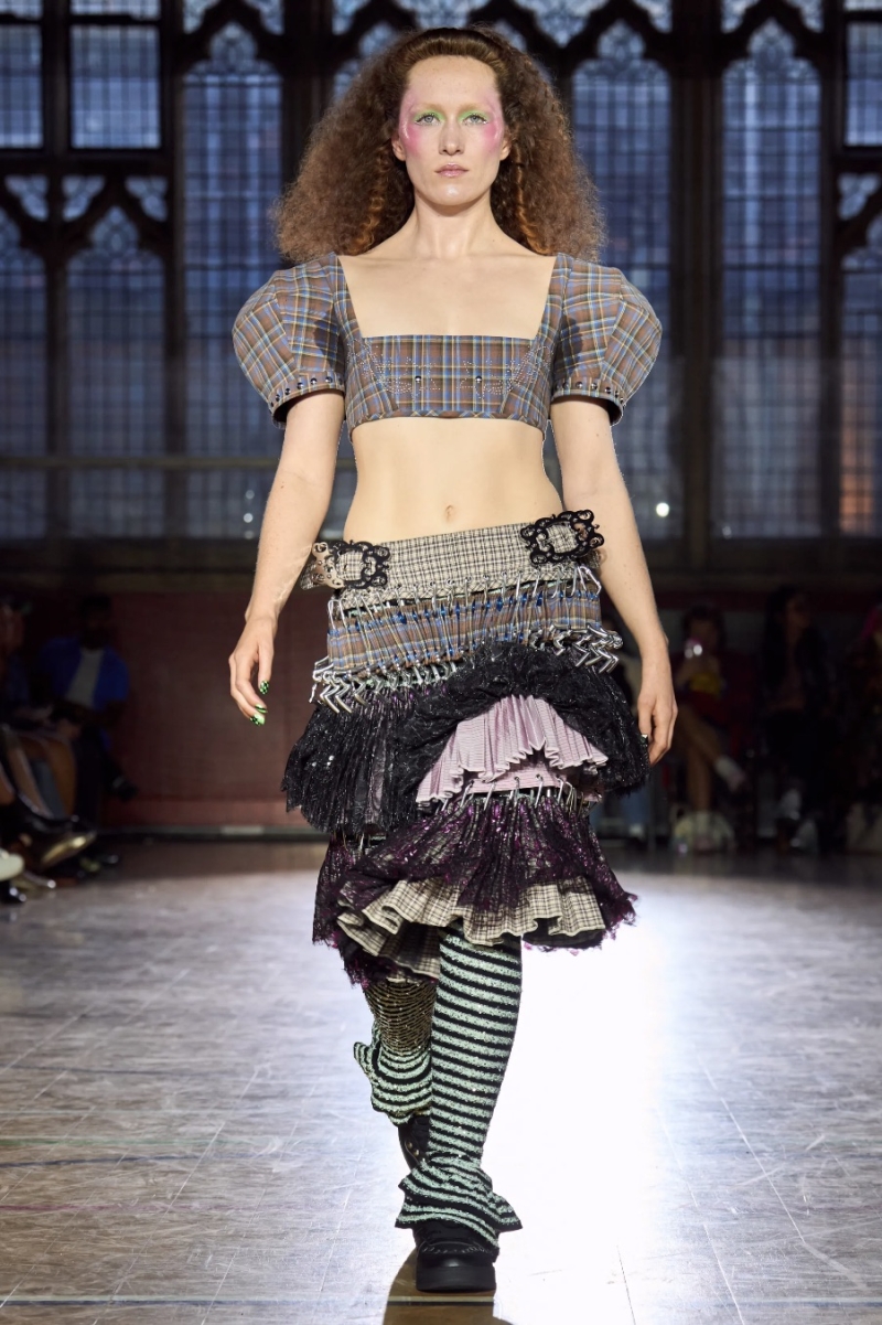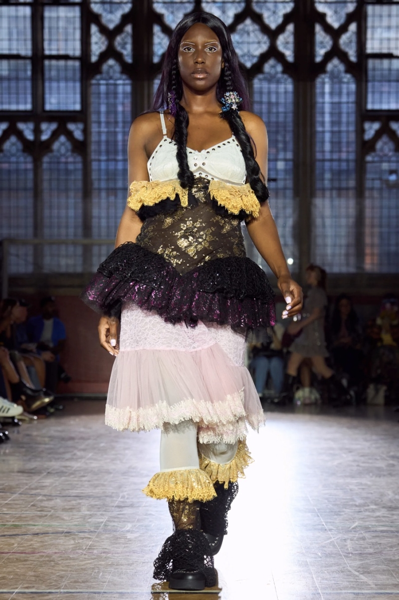 Chopova Lowena juxtaposes folklore and sportswear with a focus on sustainability and craft. Their anthropological approach to design is defined by the appreciation and modernisation of traditional textiles, crafts, and techniques. Utilising nuanced intersections between worlds and themes, they seamlessly marry references ranging from Bulgarian folklore to 1980s rock climbing. They strive to honour these seemingly incongruous references by creating harmonious and distinct pieces. Whilst achieving their aesthetic vision, they prioritise sustainability and ethical practice by using recycled materials and deadstock textiles, often in the form of pillowcases and aprons. This ethos extends to their employment of skilled female artisans in Bulgaria; through cultivating a community of seamstresses, they create stable job opportunities for women passionate about rejuvenating cultural heritage through the preservation of traditional techniques. The objective of their brand is to champion a system of ethical consumption, by upholding an appreciation of skill, craft, time, and environmental impact.