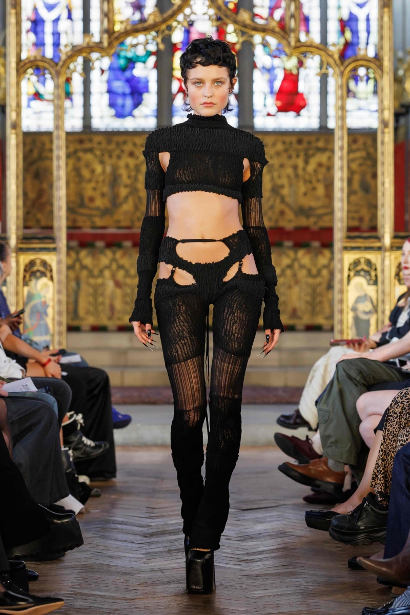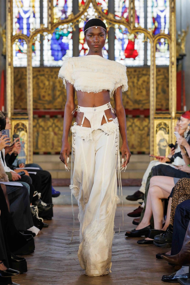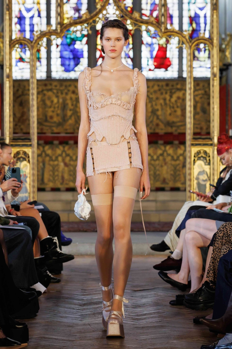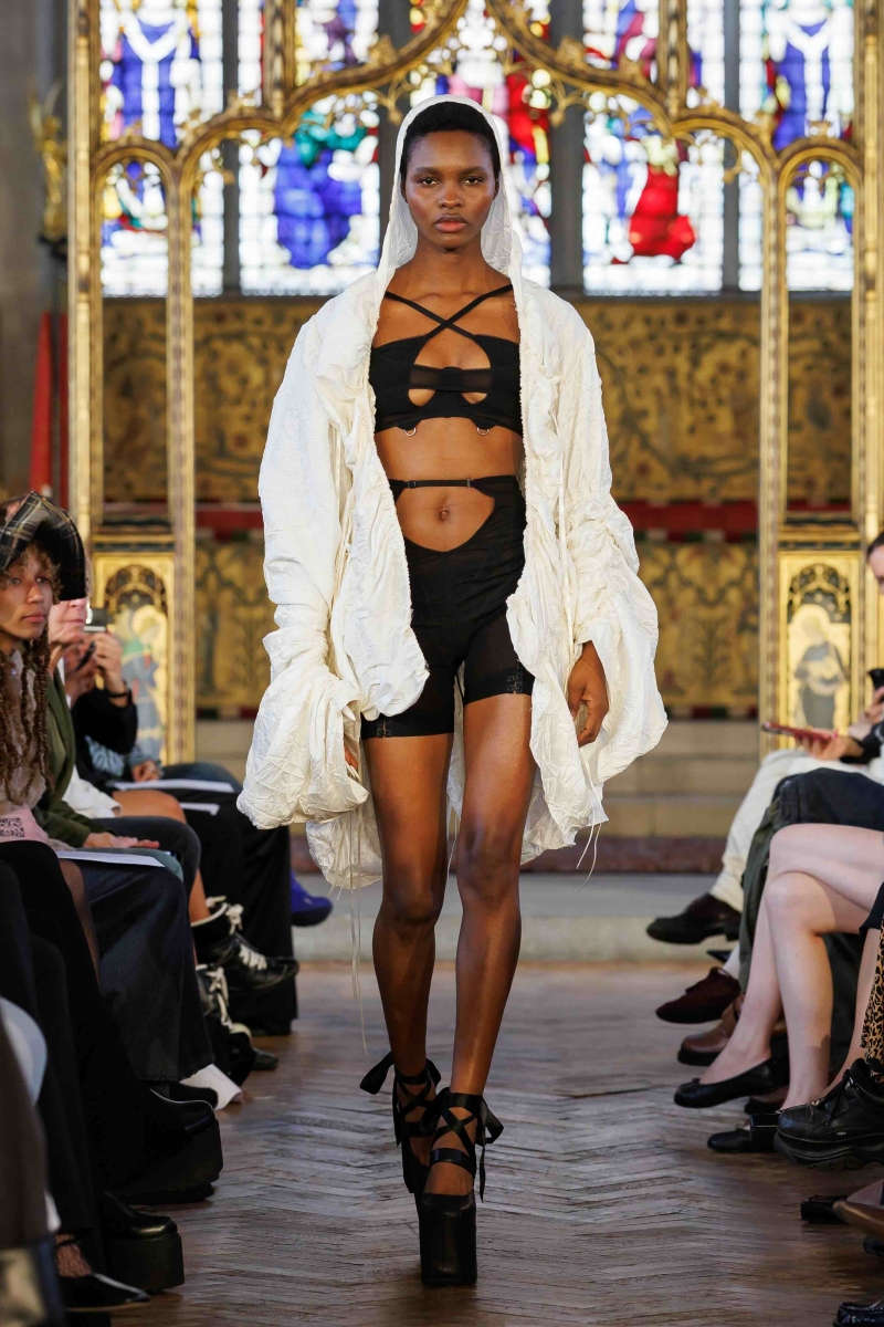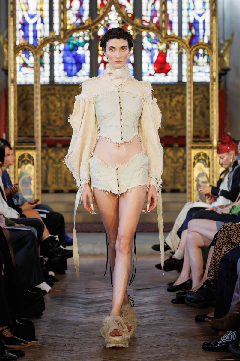 Dreaming Eli’s lingerie-coded, couture-inflected collections are made entirely in London, using hand-dyeing, hand-distressing, pleating and patchworking to ensure each piece is unique. Romantic draping, dramatic volume and structured corsetry blend with underwear-inspired eveningwear, layered with silks, Chantilly lace, tulle, chiffon and satin, balancing fragility with power. Lace-up adjustability ensures a fit for real bodies and longevity through design.