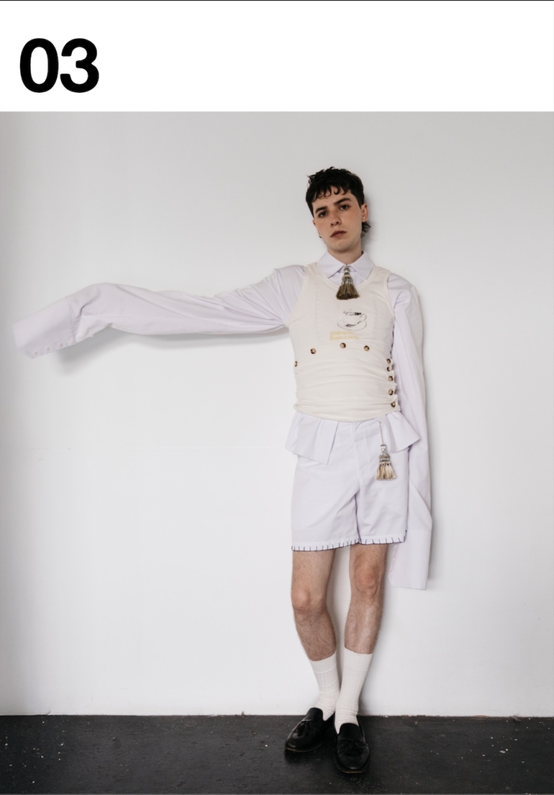 Graduating in Fashion Design from Leeds Art University, with tenures at Très Bien, S.S. Daley and Anya Hindmarch under his belt, the designer founded his eponymous label in 2023.