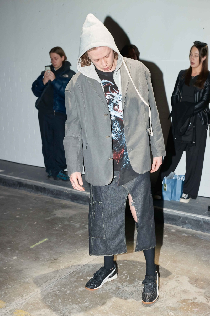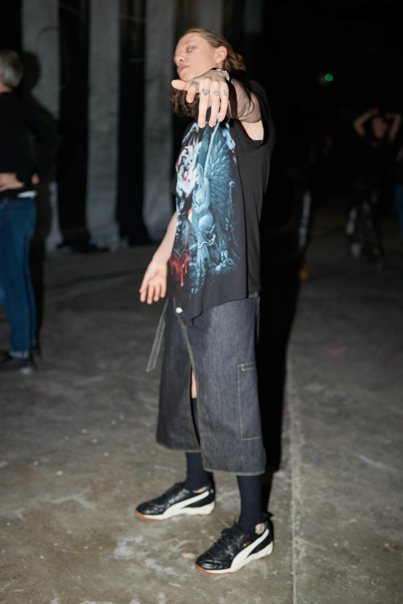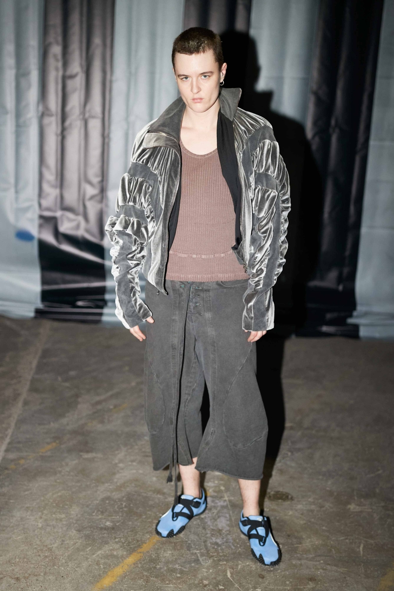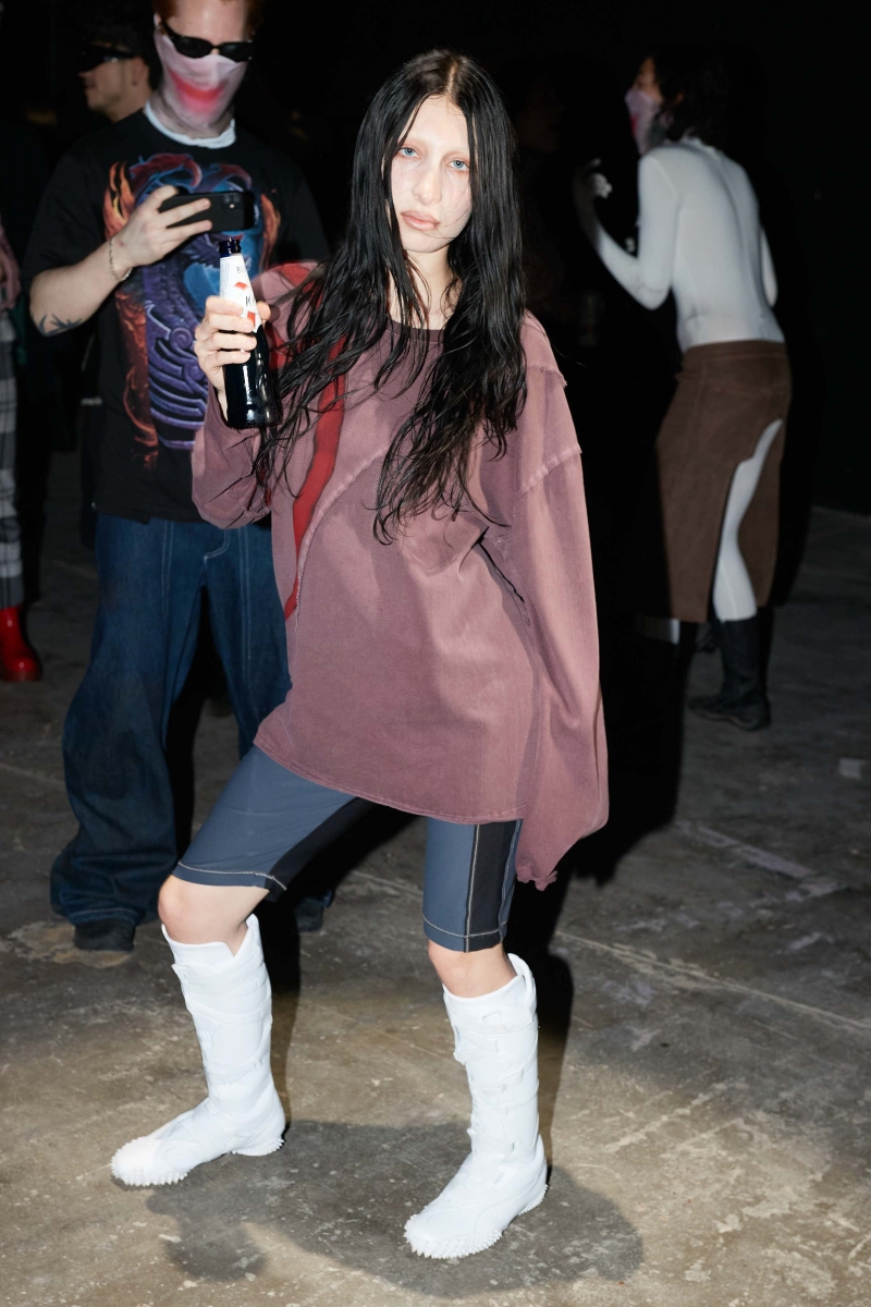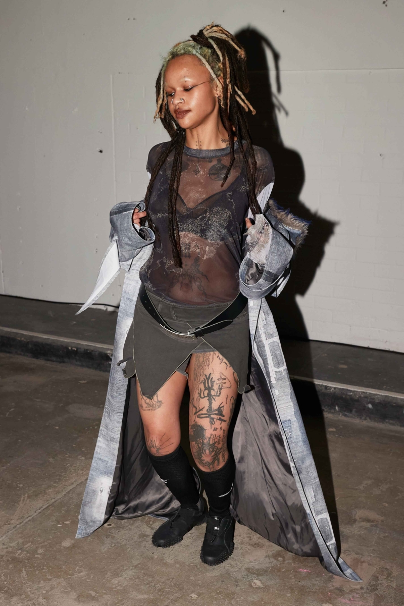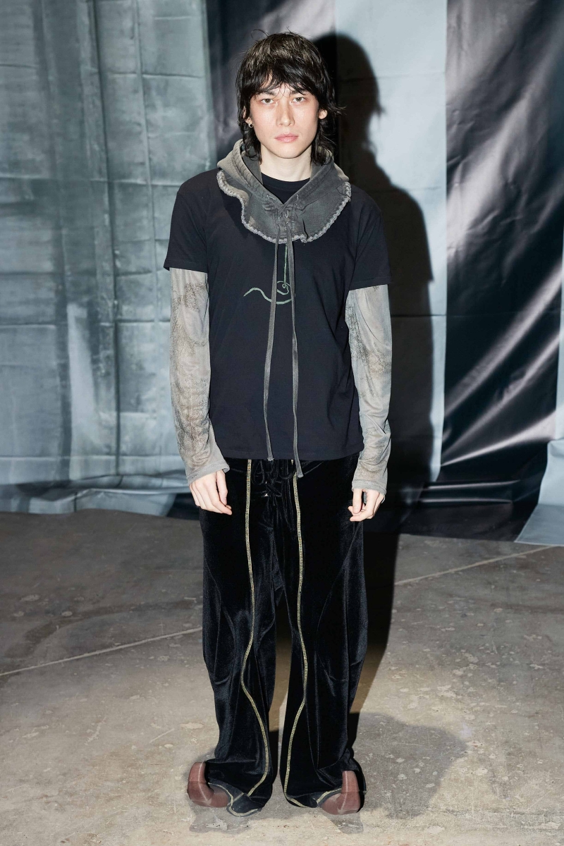the psychological and emotional layers of modern existence, embodying the tension between concealment and revelation. In her new collection, Marie continues her inquiry into archetypal characters by imagining a variety of 21st-century archetypes, such as the hooligan, the decadent romantics, and the undead teenagers. Inspired by the notion of "friendly stalking" and the feeling of being trapped—whether within oneself or a domestic environment—The Shell reimagines historical elements such as 19th-century tapestry, elaborate curtains, and carpet prints. The collection fuses these traditional aesthetics with an underground, rave-like energy, evoking the eerie grandeur of a derelict, possibly haunted, castle.