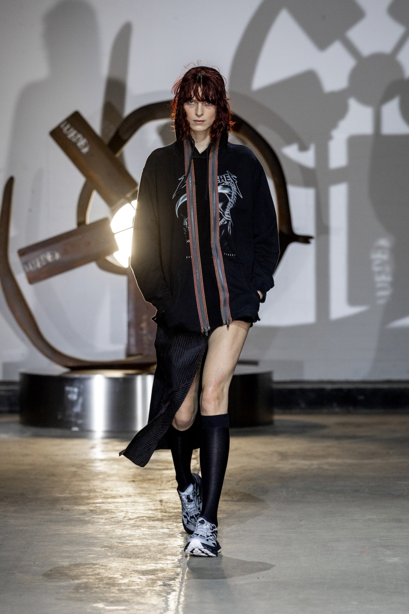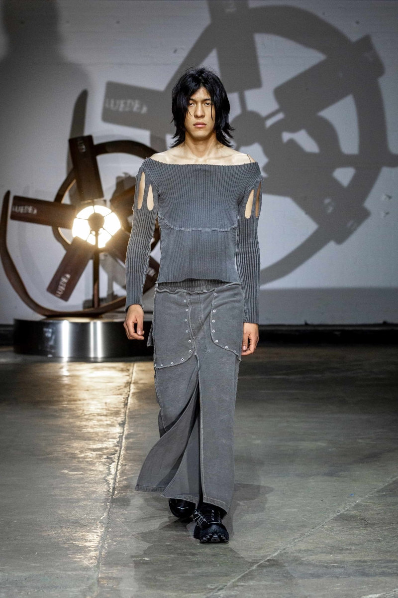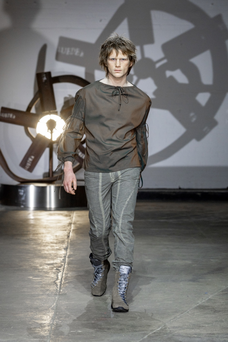 For Autumn/Winter 2026, LUEDER presented Ghosts of My Life at London Fashion Week NEWGEN, unveiling a collection that confronts fear, anger, and nostalgia through the lens of community, mental health, and genderless design. The collection continues LUEDER’s mission to destigmatise mental health, advocating for a more integrated fashion industry that supports both its creators and its communities. Ghosts of My Life is inspired by the haunting emotional landscapes of Tobias Spichtig’s paintings, the film Powder, and the late cultural theorist Mark Fisher, particularly his book Ghosts of My Life, which explores hauntology and the persistence of the past. These references form a world that is dark, seductive, and charged with tension, where memory, fear, and desire collide. Music played a vital role in shaping that atmosphere - LUEDER collaborated closely with Danny Harle for the AW26 Catwalk Show, who created an original soundtrack with an expansive sound that underscores the show’s emotional intensity and communal energy, complimenting the diverse model casting of fellow musicians and creatives from across the city.