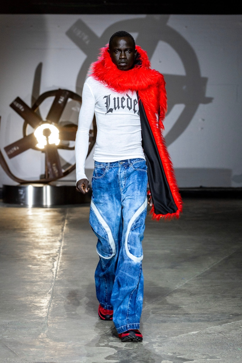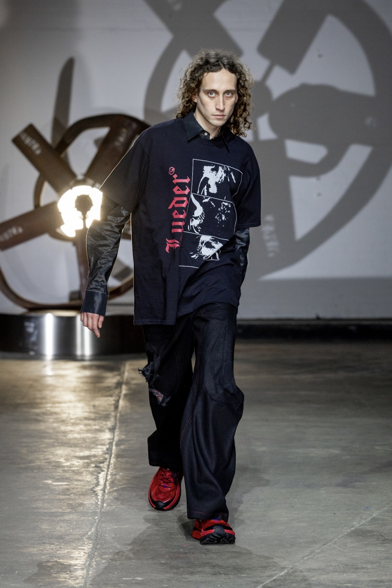 LUEDER is a ready-to-wear brand built up since 2019. To date, LUEDER has produced runway shows for both London and Berlin Fashion Week, with garments sold internationally. The AW25 show (and ‘Men are so BACK’ t-shirt) was one of Dazed’s fashion moments of the year, with other highlights including dressing Yung Lean, designing for YEEZY, and, last year, producing a collection for Inditex-owned Pull & Bear. Sponsorships from Hoka, Puma, Vibram and Nothing have supported the business.