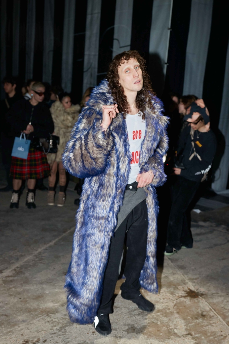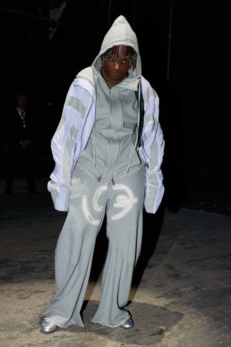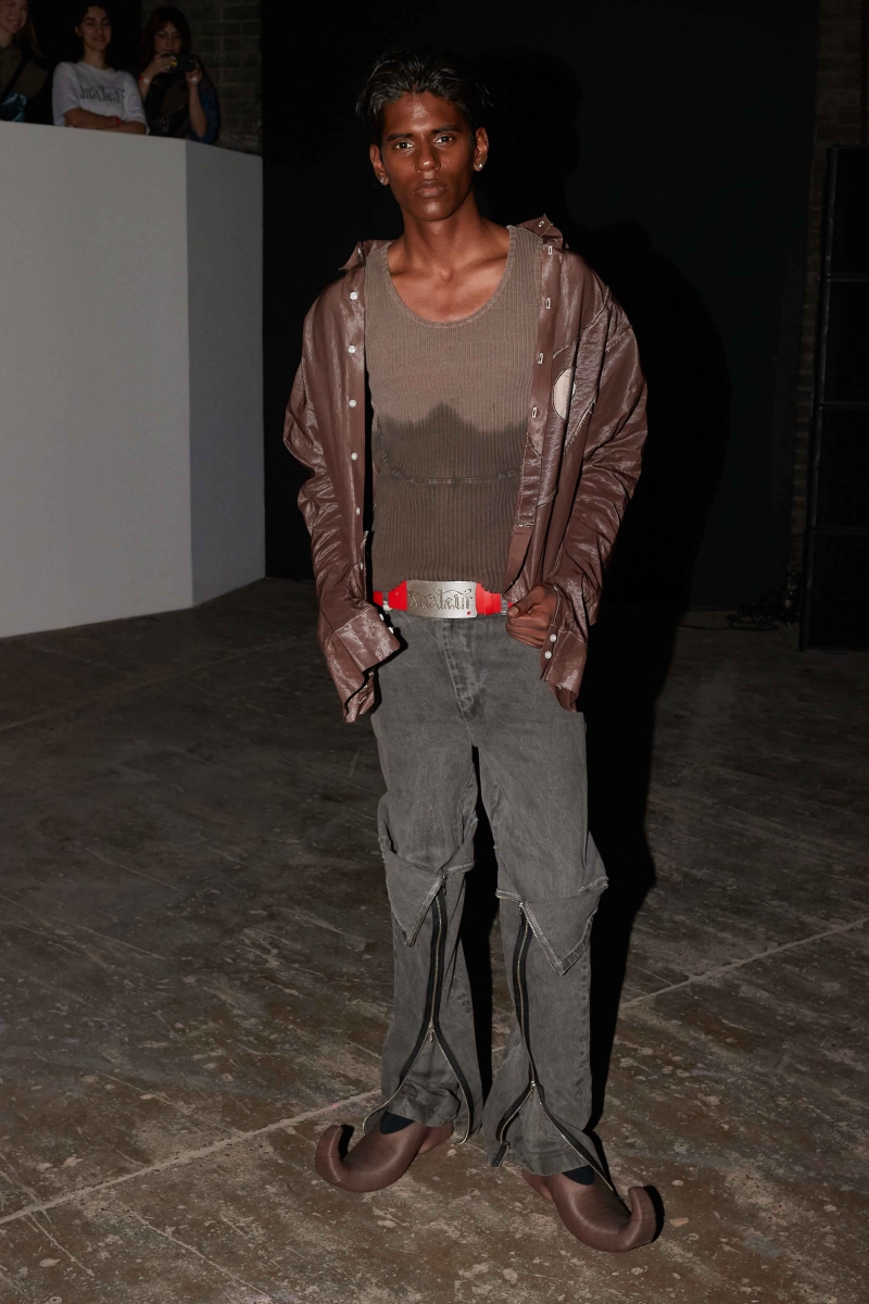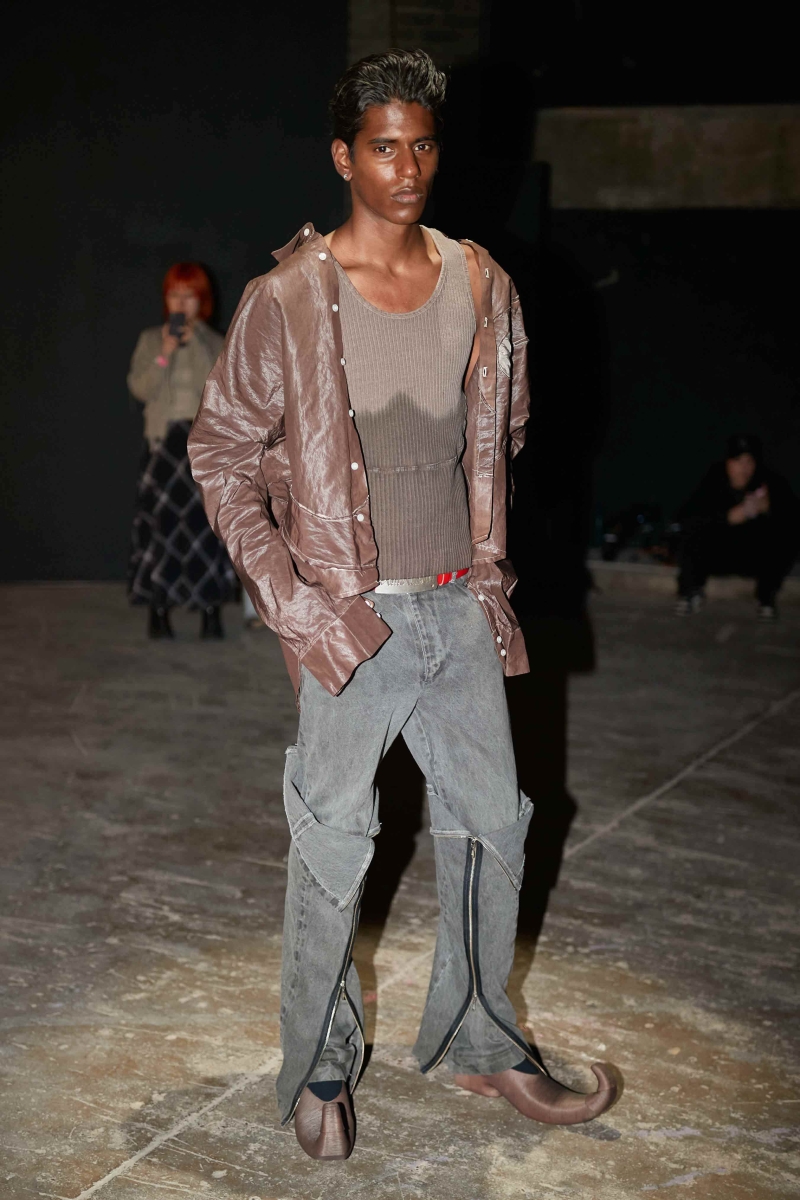 past and the future marry into a contemporary vision. The runway experience will be immersive, featuring custom carpets sponsored by Pointex, adorned with black-and-white images of LUEDER’s community—part mugshots, part spectral apparitions. Three grand chandeliers, designed by Tym Novikov, will hang above, refracting laser light and echoing the collection’s motto: an upside-down rose motif symbolizing a distorted, illusive reality. Sound design by Simon Parris will incorporate a heartbeat-like ticking clock, the hum of drones, and a haunting, androgynous acapella voice, reinforcing the show’s surreal and cinematic ambiance.